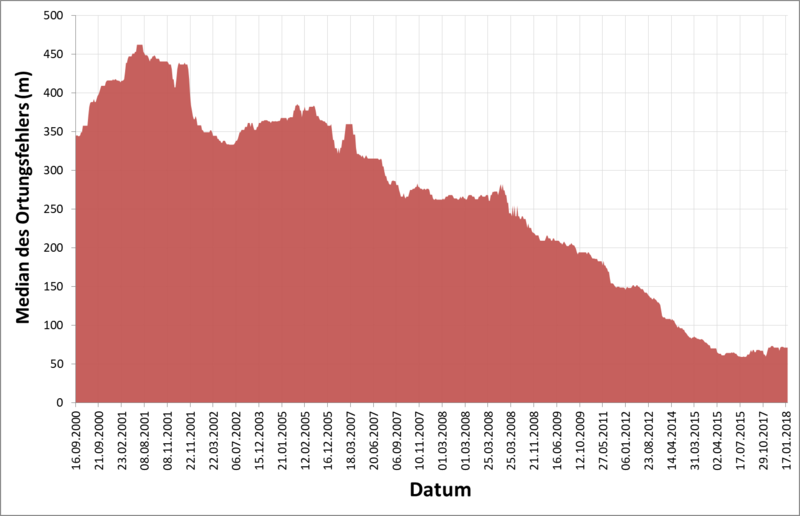 Entwicklung der Blitzortungsgenauigkeit über die letzten Jahrzehnte