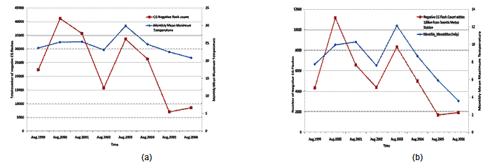 time of 12.59 minutes was calculated for the first CG lightning strike within the 5 km radius. This enables